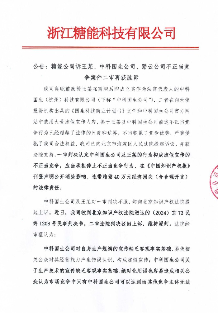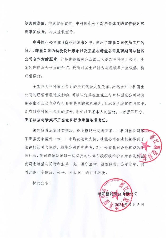 Annuncio: Sugar Energy ha vinto il secondo processo del caso di concorrenza sleale contro Wang, Zhongke Guosheng Company e Lieyun Company